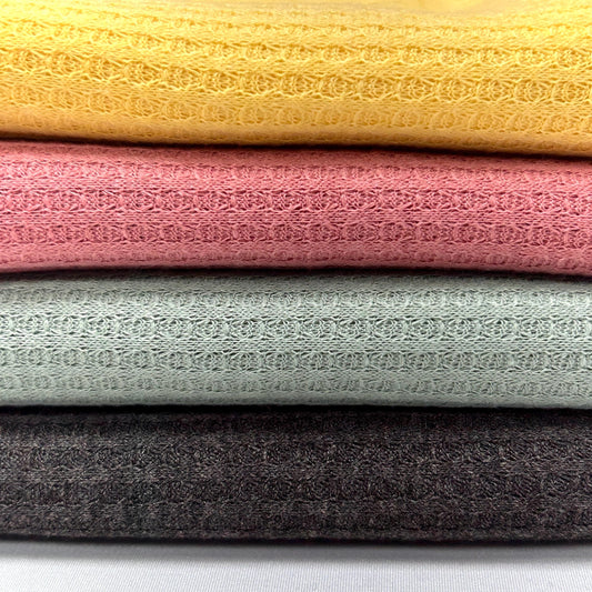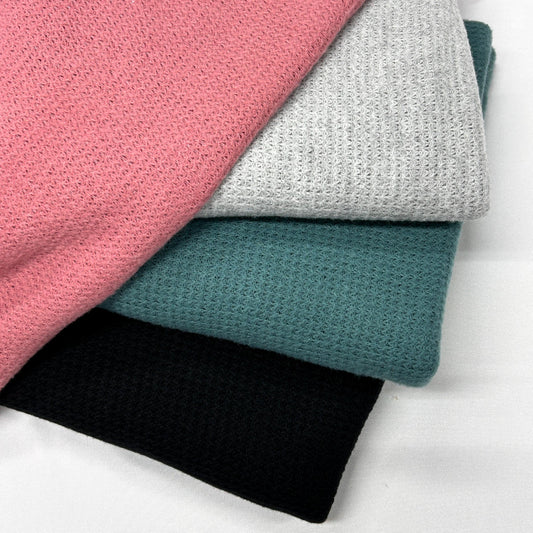 Waffle Brush fabric. SOLIDS VARIETY, Poly Blend, Fabric by the 1/2 Yard, Yard, or Sample, sweater knit fabric, stretch knit, Fashion fabric